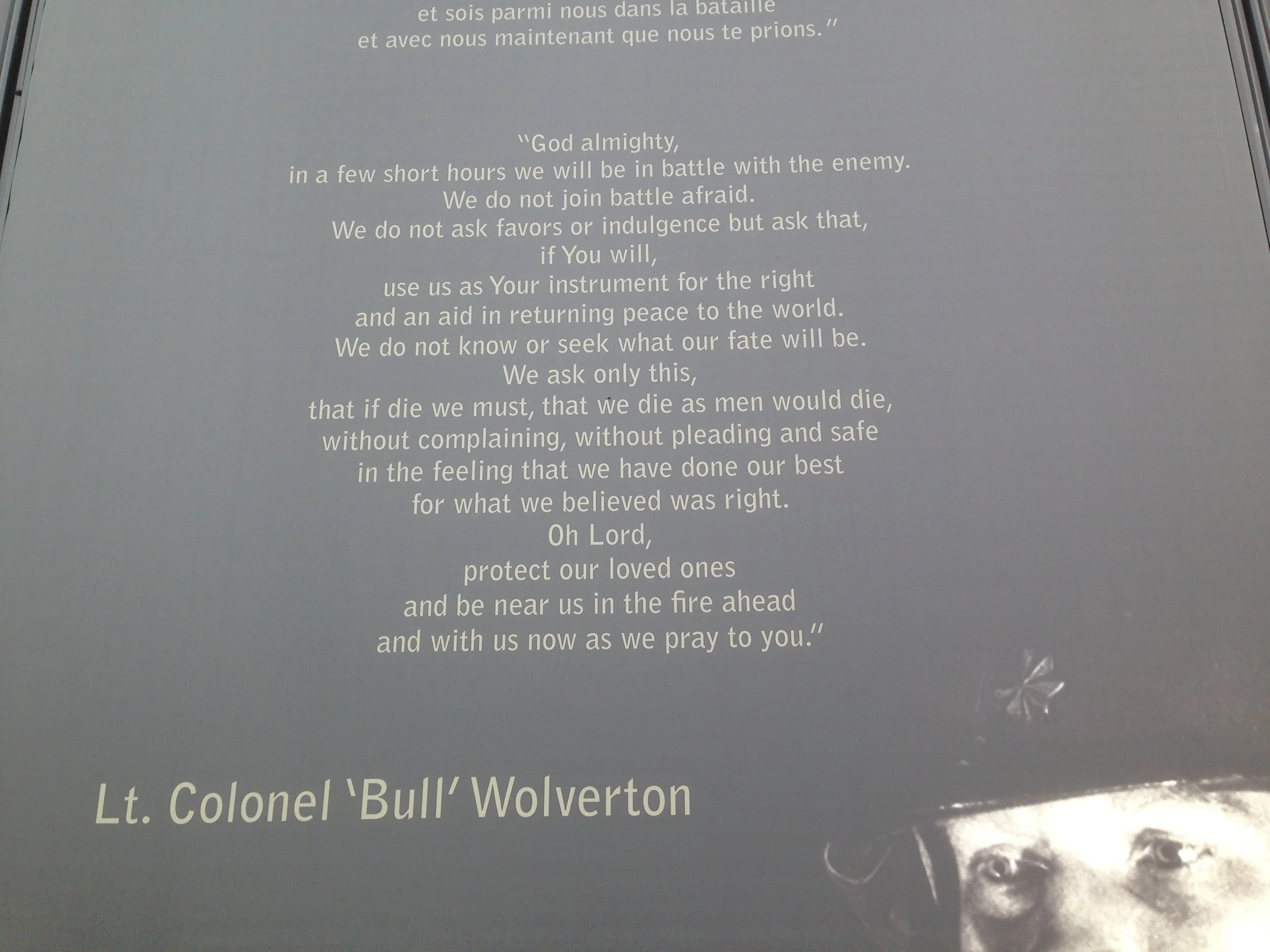 Prayer given to paratroopers by Lt Col "Bull" Wolverton at the briefing before boarding and flying to jump behind enemy lines Col Wolverton's parachute snagged a tree on landing While suspended he was killed by the Germans.